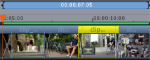Tras la renderización, las barras del eje temporal se vuelven de color verde. Cuando edites una área renderizada, la barra volverá al color rojo y deberás actualizar el área. -