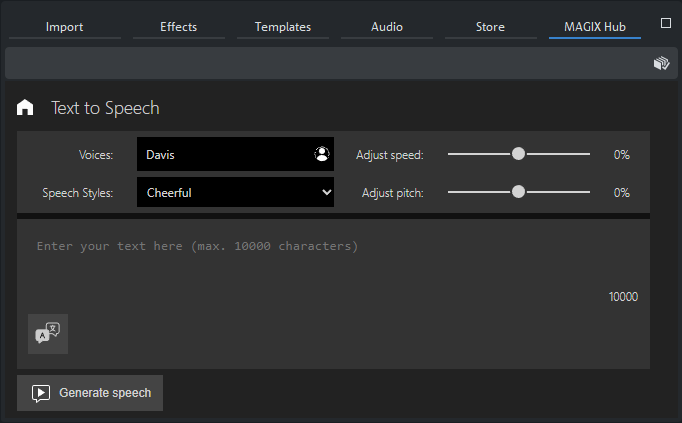 Haz clic en Descargar. El archivo de audio generado se guarda como un archivo .wav en la carpeta MAGIX Hub.