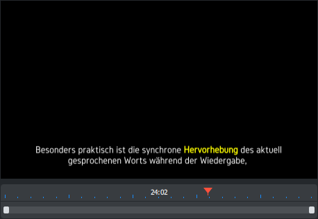 Vous pouvez faire automatiquement ressortir les mots prononcés dans le texte du titre lors de la lecture audio. Cela permet de mieux suivre le contenu parlé, par exemple pour l'apprentissage linguistique ou l'amélioration de l'accessibilité de vidéos.