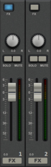 Sous les boutons Effets et Auto de chaque canal de la table de mixage, vous trouvez deux curseurs d'envoi d'effet (FX 1 et FX 2). Vous pouvez définir ici le volume du signal provenant de la piste à utiliser dans les deux pistes d'effets.