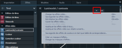Dans toutes les pages d'effets des rubriques Effets vidéo, Effets de mouvement et Stereo3D, vous avez la possibilité de transférer vos paramètres d'effets actuels à d'autres objets ou de charger des paramètres déjà enregistrés. Pour cela, ouvrez le menu à l'aide du bouton fléché en haut à droite.