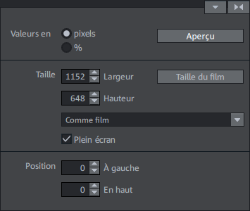 | Taille du film | L'objet sera redimensionné à la taille du film. |