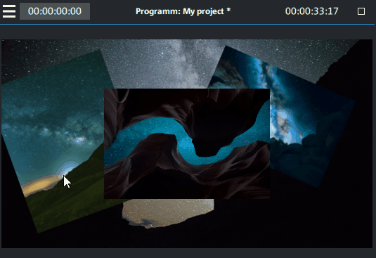 Tous les objets sélectionnés peuvent être déplacés par glisser-déposer (en maintenant le bouton de la souris enfoncé) sur les pistes et aux positions souhaitées. Nous vous recommandons cependant de placer des objets connexes sur des pistes voisines et de créer des pistes séparées pour les objets audio et vidéo. Les vidéos auxquelles vous souhaitez appliquer une transition doivent en règle générale se trouver sur une seule piste.