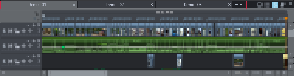 The project window contains a tab for each movie you edit in a project. The tab can be used for creating films and also for managing your projects, i.e. here you can sort the order of the movies, add new movies, remove existing movies from the project or rename the movies.