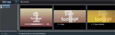 Links ziet u een structuur waaruit u verschillende soorten menusjablonen kunt kiezen. Daarboven moet u eerst instellen of sjablonen met de beeldverhouding '16:9' of '4:3' moeten worden gebruikt.