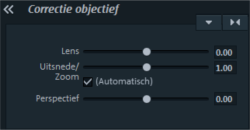 Automatisch: de parameter 'Uitsnede/Zoomen' wordt automatisch dusdanig ingesteld, dat er geen zwarte randen meer zichtbaar zijn die door wijzigingen van de parameter 'Lens' kunnen worden opgeroepen.