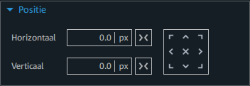 Met deze waarden verplaatst u het object ten opzichte van zijn ankerpunt. Voer een absolute (px) of relatieve waarde (%) in om de positie van het ankerpunt in te stellen. Het voorwerp beweegt afhankelijk van het eerder ingestelde ankerpunt. Klikt u de eenheid om te schakelen tussen pixels en procenten. |