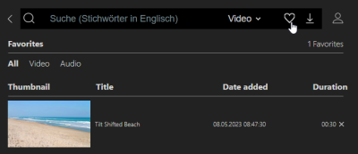 Als u tijdens het bladeren door de uitgebreide voorraad bestanden tegenkomt die u bevallen of die u wilt gebruiken voor toekomstige projecten, kunt u deze als favoriet markeren. Deze functie is bijzonder nuttig als u uw downloadquota reeds hebt opgebruikt of als u een voorafgaande selectie wilt maken alvorens de bestanden te downloaden.
