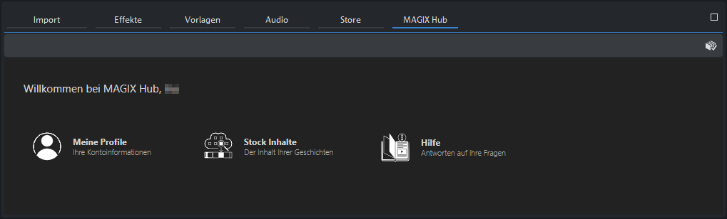 Met de cloud-based Magix Hub heeft u een centraal punt voor al uw mediabestanden. Hier heeft u toegang tot accountinformatie, stockcontent, taaldiensten en online hulp.