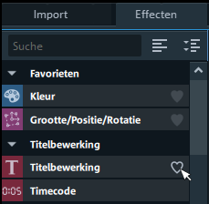 Hier vindt u de effecten van beeldverbetering, speciale effecten en chroma-key-mixeffecten |
