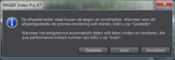 U kunt bepaalde plaatsen in de film door Video Pro X alvast laten renderen. Dat is vooral handig als deze vanwege de toegepaste effecten en overgangen niet vloeiend kunnen worden weergegeven. Het voordeel vergeleken met de optie 'Audio en video samenvoegen' in het menu 'Bewerken' is dat alle objecten in het project behouden blijven. Het gerenderde materiaal wordt op de achtergrond afgespeeld, als de afspeelmarker de betreffende positie bereikt.