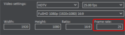 De stapgrootte van het raster is afhankelijk van de framerate die is ingesteld bij de filminstellingen (Menu Bestand > Instellingen > Film). U kunt kiezen tussen de in Europa gebruikelijke framerate van PAL (25 frames per seconde) of die van het in Amerika en Japan gebruikelijke NTSC (29,97 frames per seconde) of naar wens zelf een andere framerate specificeren.